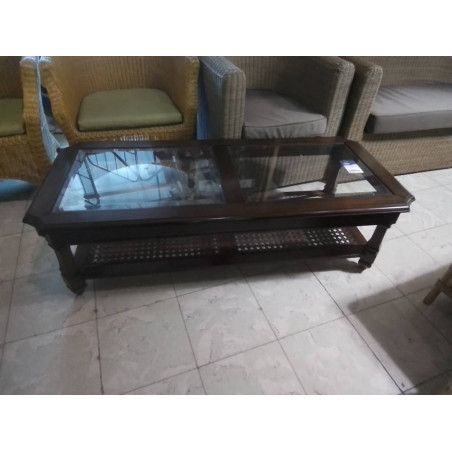 • TABLE DE SALON BOIS DESSUS VERRE