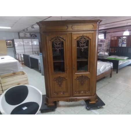 • VITRINE 2 PORTES CHENE MASSIF STYLE LIEGEOIS 129X46X181