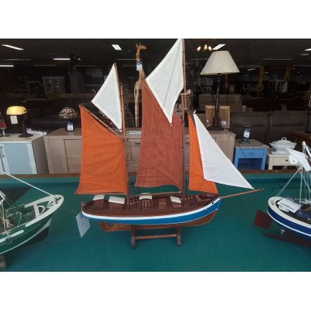MAQUETTE VOILIER BLEU ET ORANGE